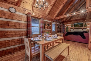 Unwind in the spacious loft with vaulted ceilings and rustic charm.