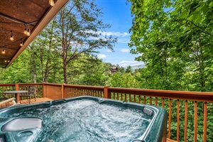 ✔ The back deck features a large 4-person Hot Tub, seating, and an amazing view of Greenbriar Pinnacle!