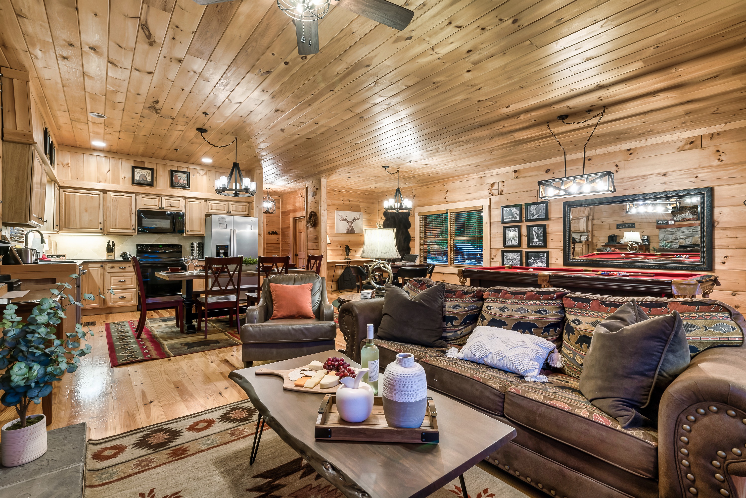 Welcome to Serenity Summit, a stunning 3,000 sq ft luxury real-log cabin perched near the top of Ski Mountain. Take in unmatched views of some of the highest peaks in the Smokies while enjoying thoughtful amenities designed for comfort, fun, and relaxation. With 3 king suites and additional sleeping spaces, the cabin comfortably accommodates up to 8 guests.
