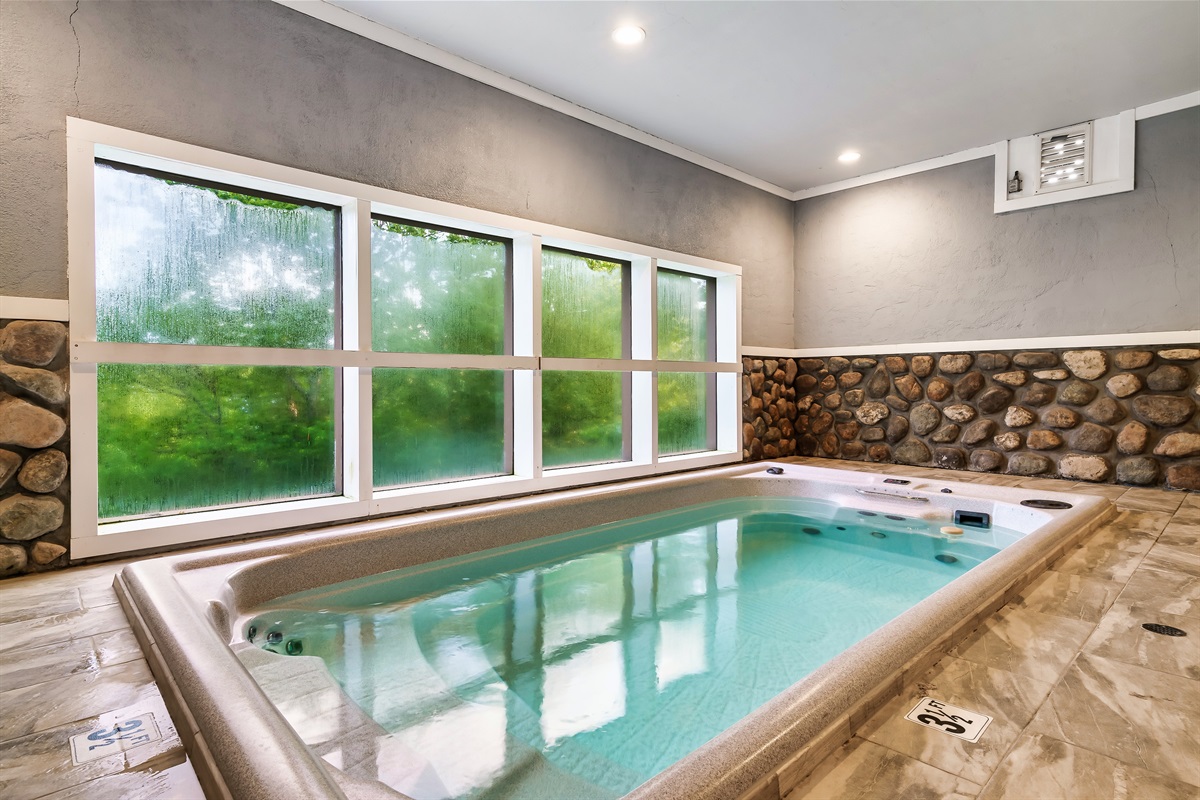 3 Bedrooms • 4 Bathrooms (3 full, 1 half) 4 Baths (3 full, 1 half) • Sleeps 2-8- Escape to a Smoky Mountain retreat with a private indoor swim spa, hot tub, and stunning mountain views.